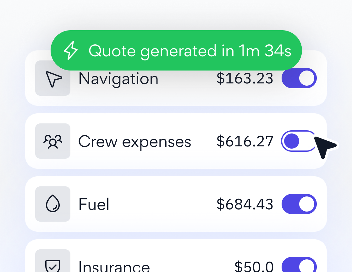 Uses real-time cost data and aircraft metrics to deliver sharp quotes every time.